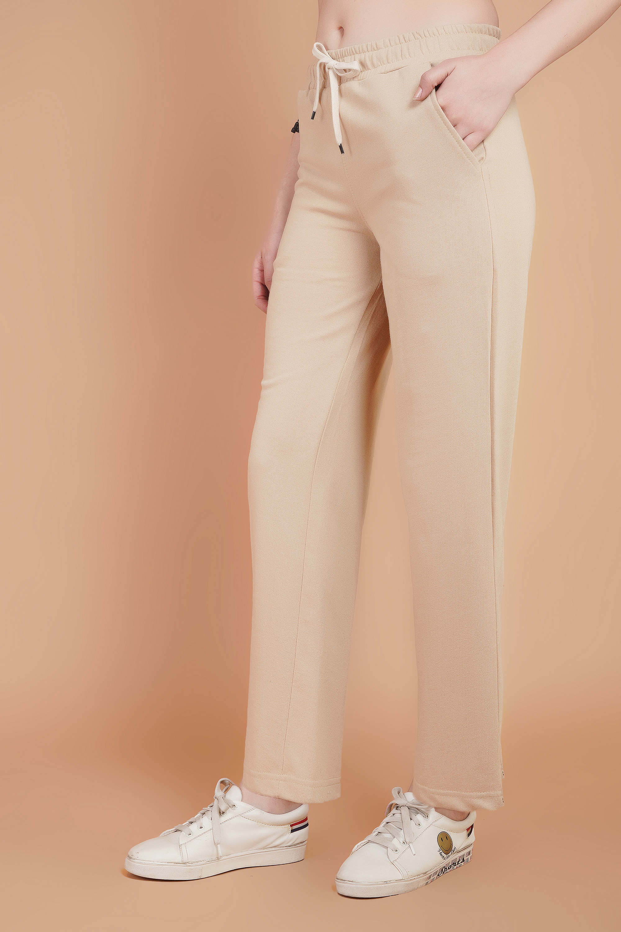 Made from a soft woven fabric blend (commonly polyester-based), the material is lightweight, breathable, and durable, making the pants suitable for long hours at work or daily wear. Functional side pockets add practicality, allowing you to carry small essentials like keys or a phone without sacrificing style.